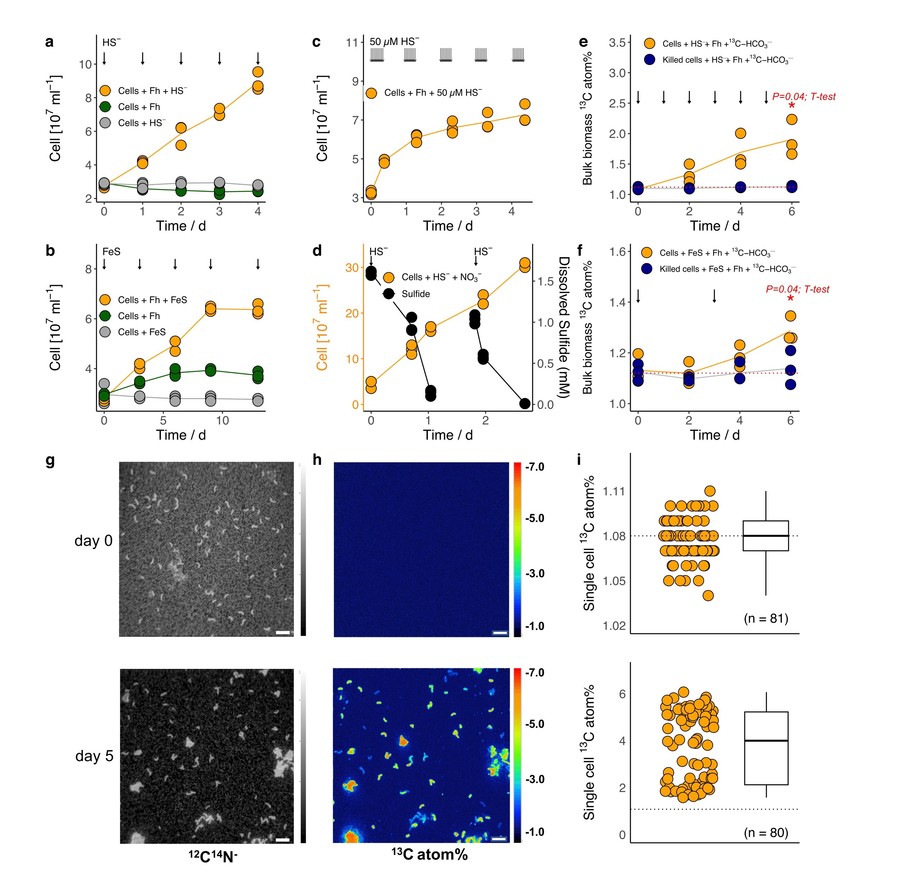 图2. Desulfurivibrio alkaliphilus利用硫化物和三价铁矿进行自养生长