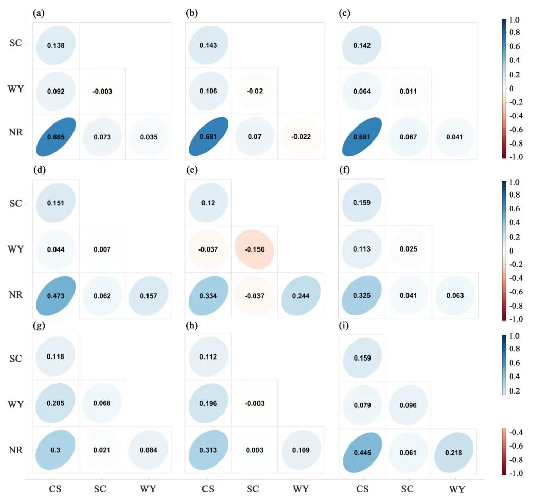 在驱动因素识别方面,森林和农田比例主要影响CS和NR,坡度是影响SC的关键因素,海拔等因素主要影响WY。